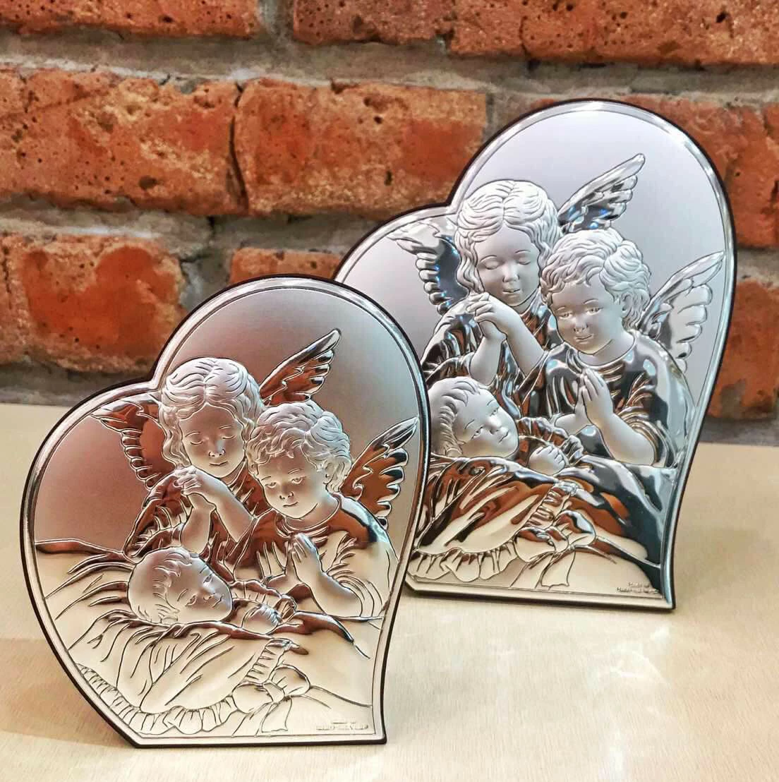 Икона серебряная "Ангелы возле младенца" (12х15см) 81084 2L