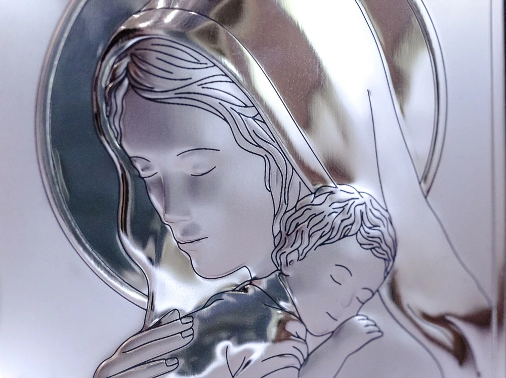 Икона серебряная "Мадонна с Младенцем"(8х8см) 81243.3L
