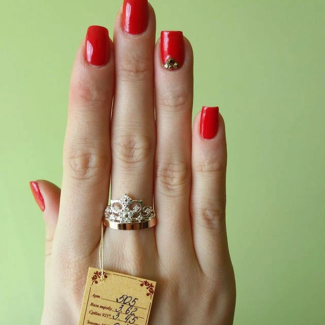 Серебряное кольцо корона с золотой пластиной и вставками с