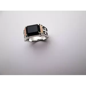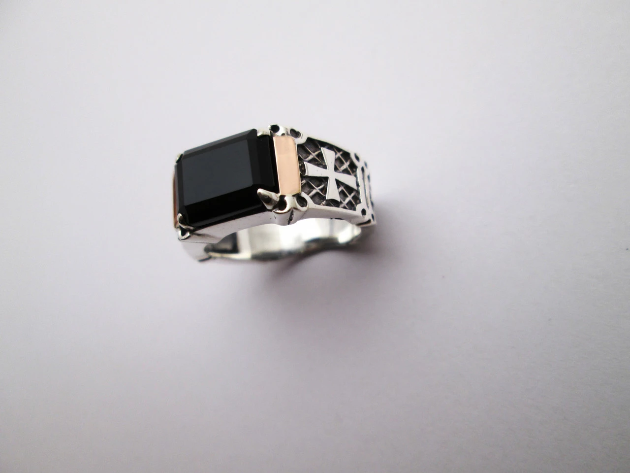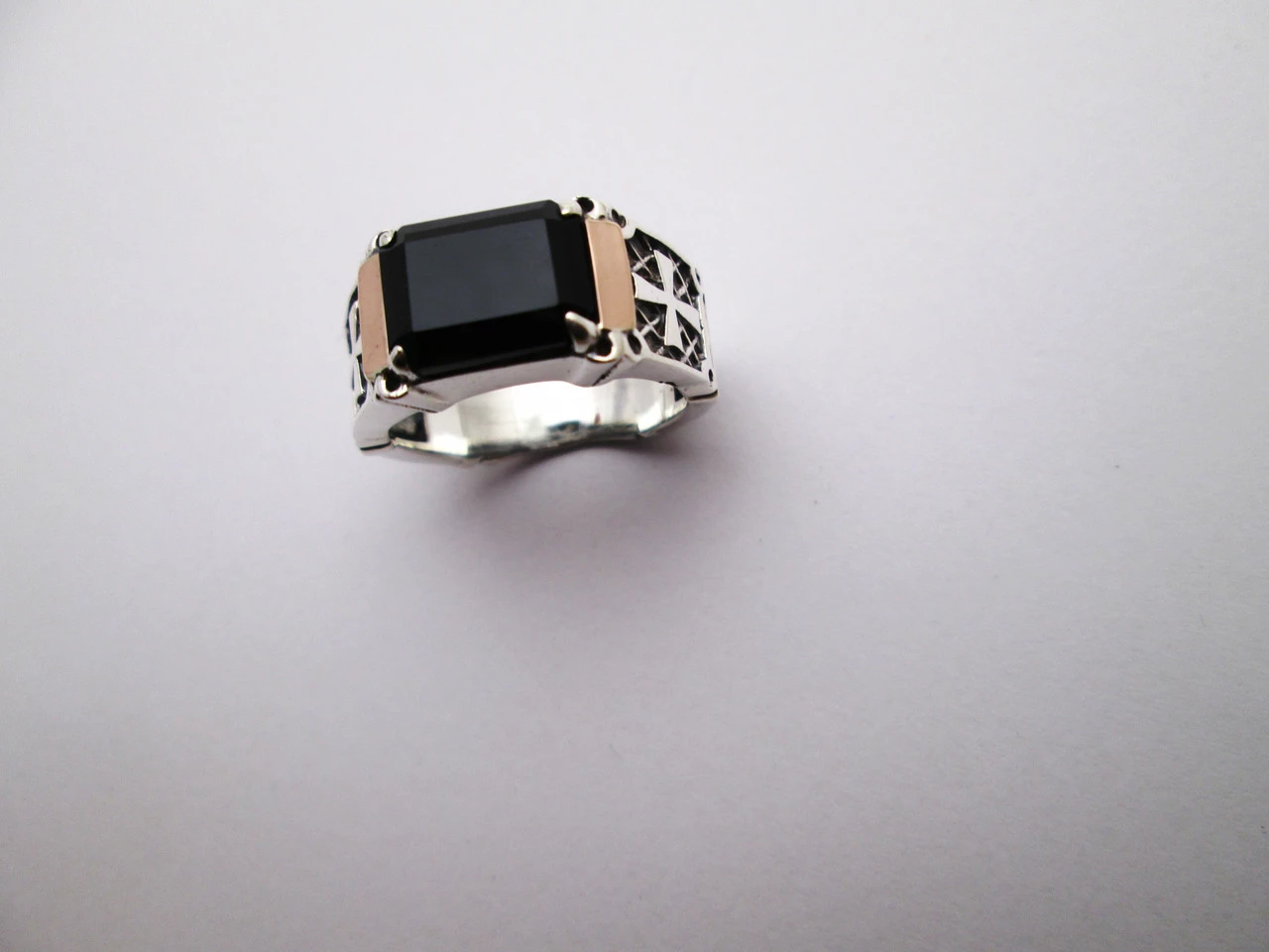 Мужской серебряный перстень с золотой пластиной "Готика"