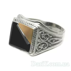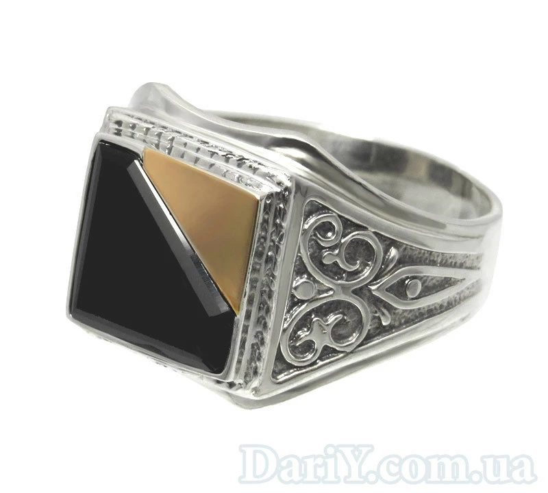 Мужской серебряный перстень с золотой пластиной "Хигис"