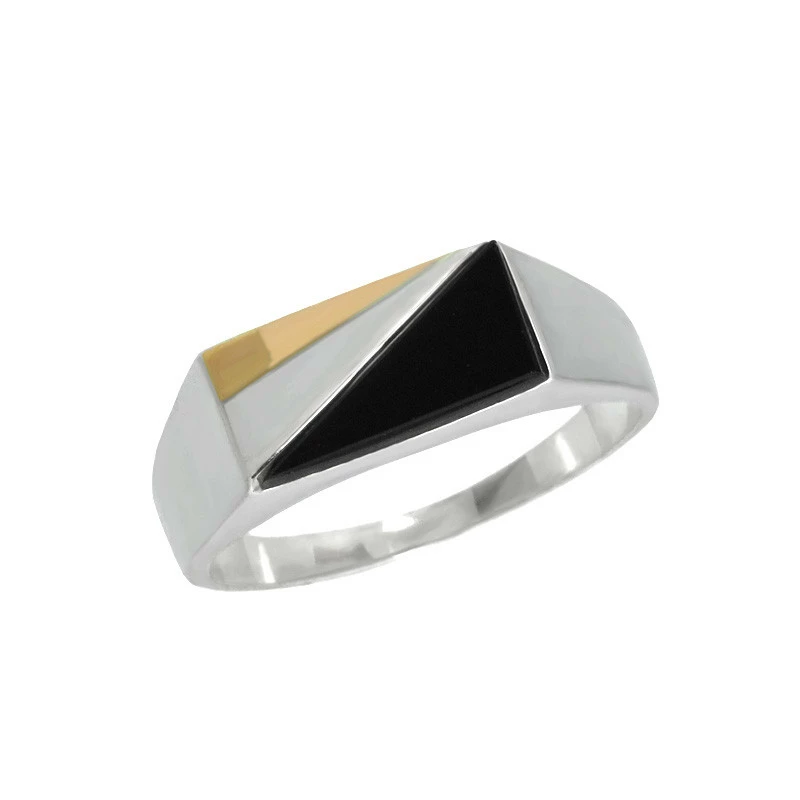 Мужской серебряный перстень с золотой пластиной "Мирт"