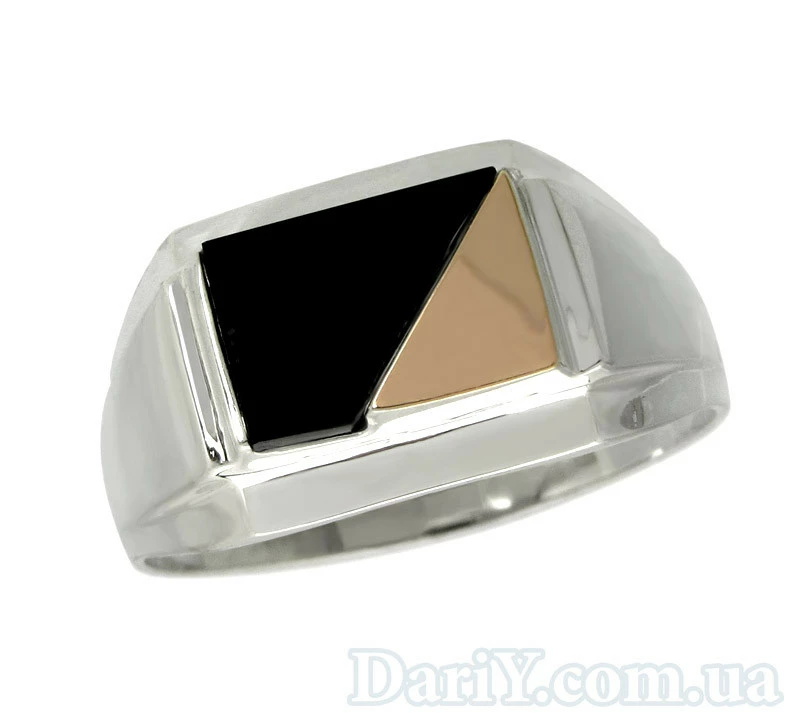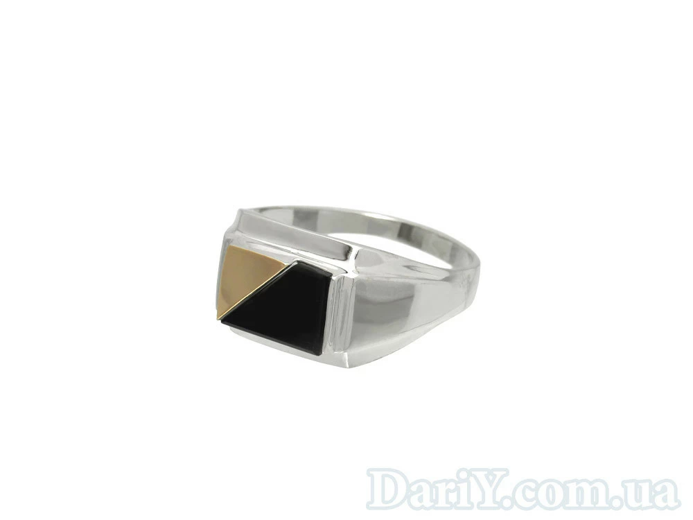 Мужской перстень с золотой пластиной и камнем оникс.