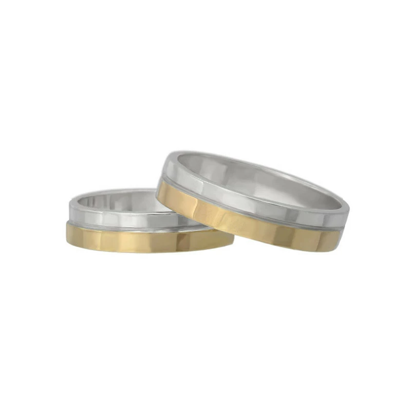 (Пара) Серебряные обручальные кольца с золотыми пластинами.