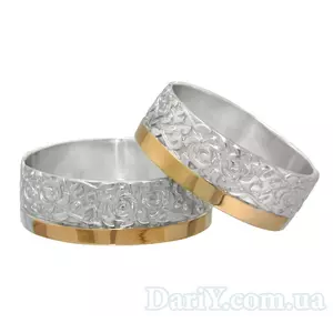 (Пара) Серебряные обручальные кольца с золотыми пластинами "Цветы в тебе"