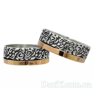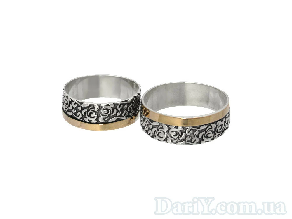 (Пара) Серебряные обручальные кольца с золотыми пластинами "Цветы в тебе"