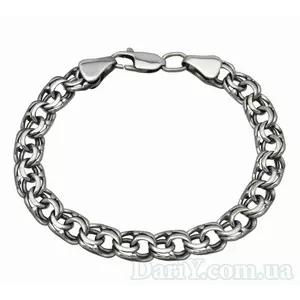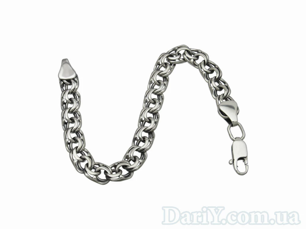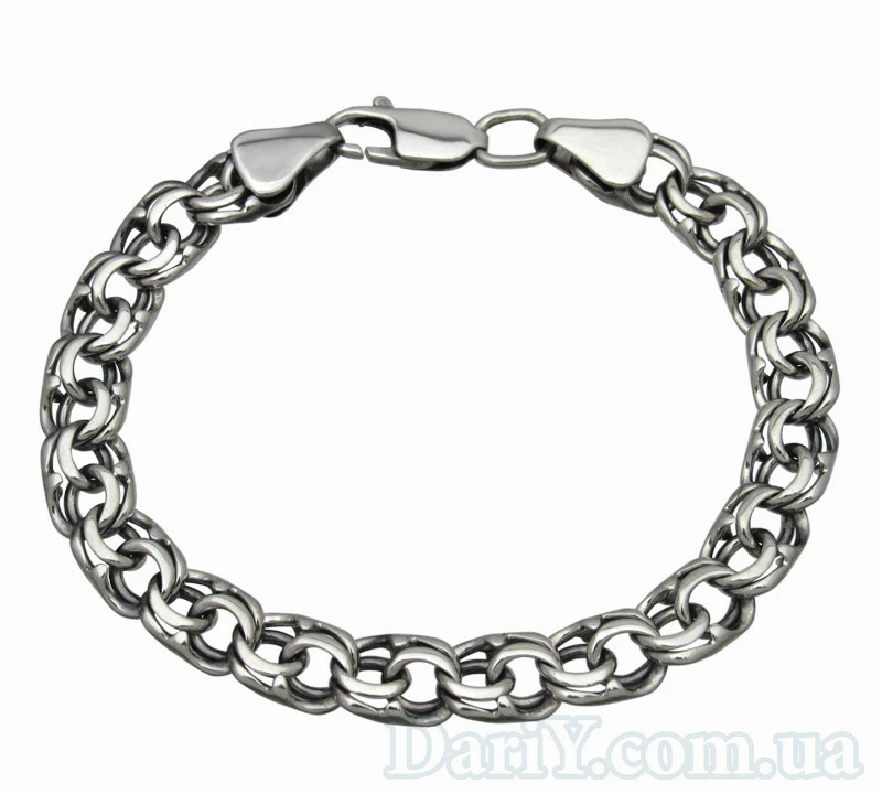Браслет из серебра, плетением бисмарк, черненый, длиной 19 см.