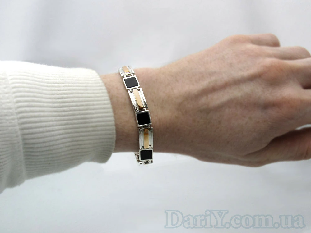 Серебряный браслет мужской с золотыми пластинами Фараон