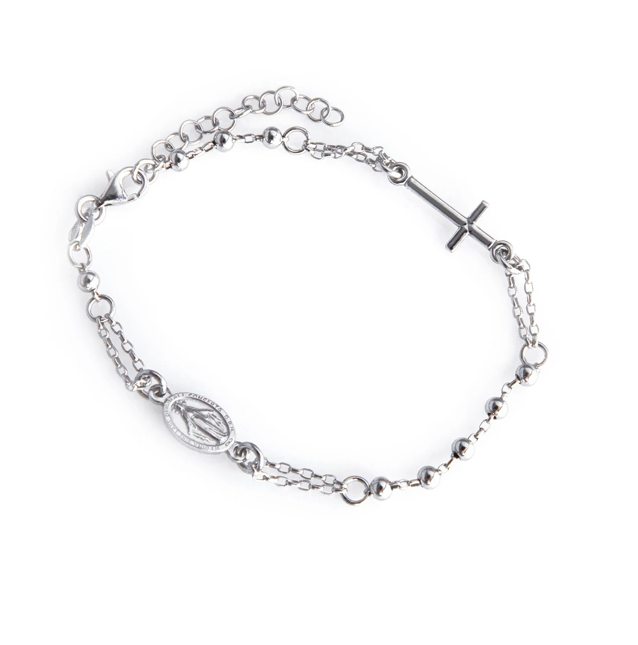 Серебряный браслет с крестиком и медальйоном (розмір 17-20)