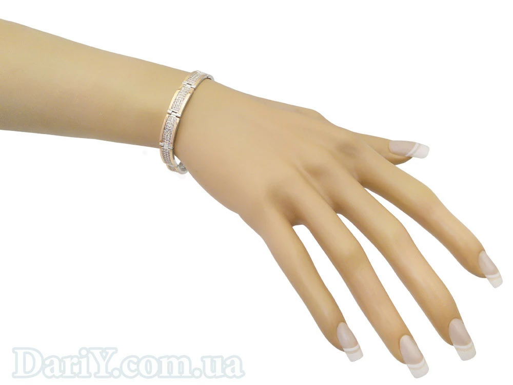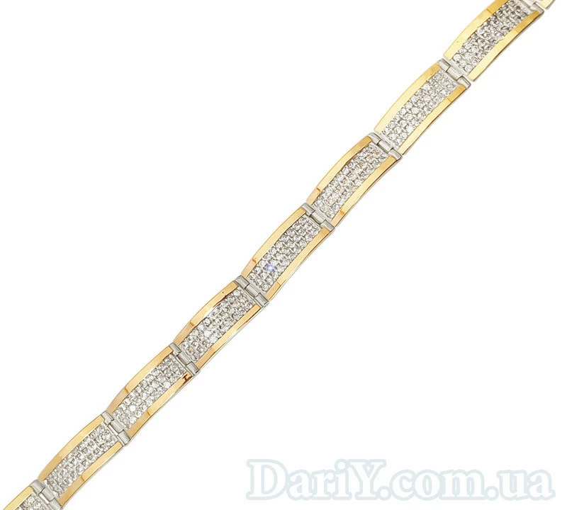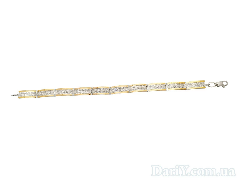 Браслет из серебра с золотыми пластинами и фианитами, "Аркадия". Из