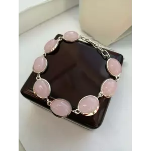 Серебряный браслет с золотыми пластинами Розовым Кварцем "Марибель"