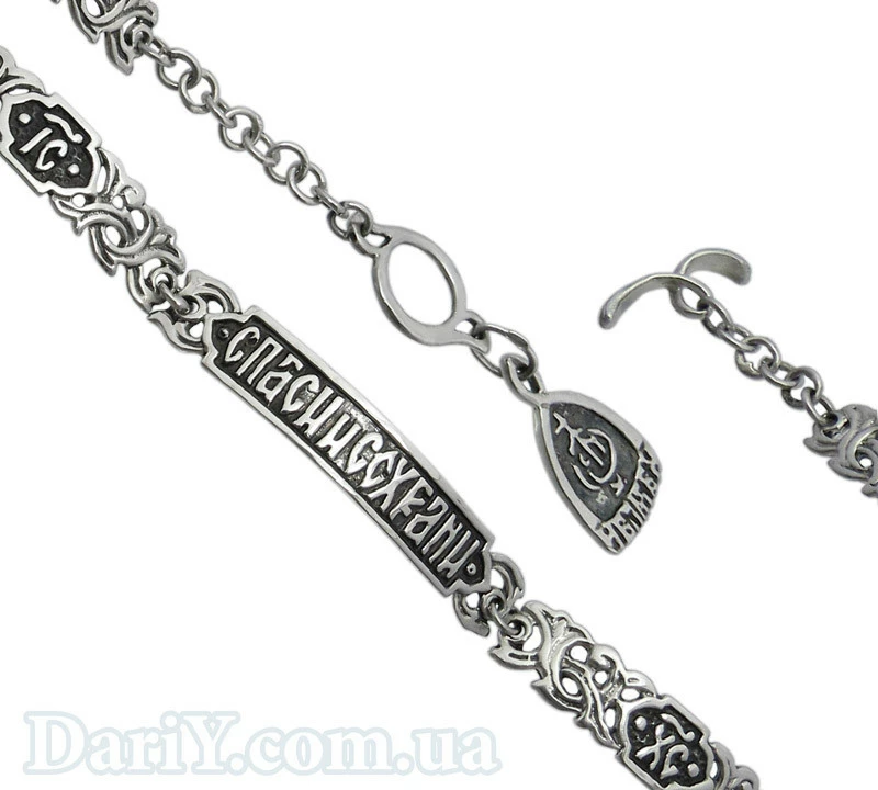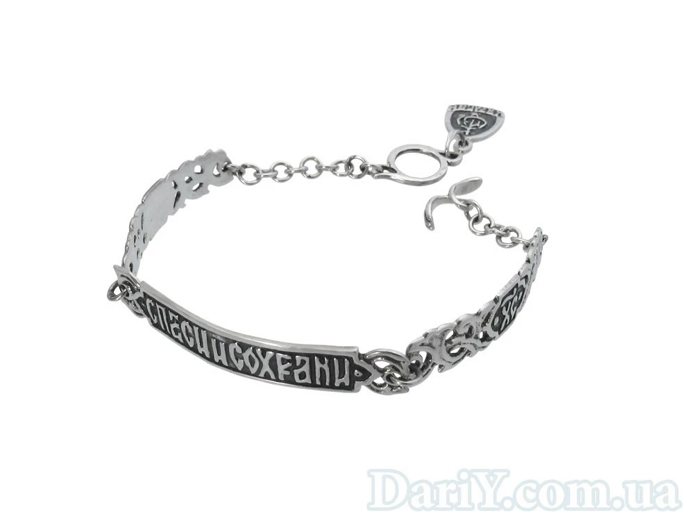 Браслет из серебра "Спаси и сохрани" длина 18 см.