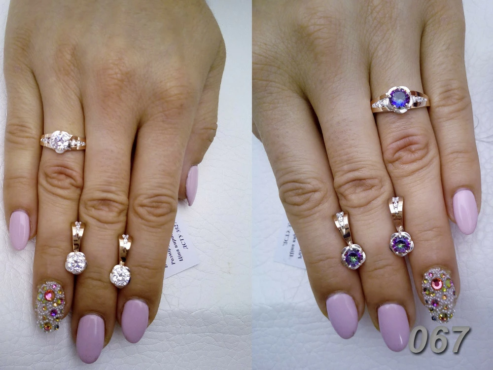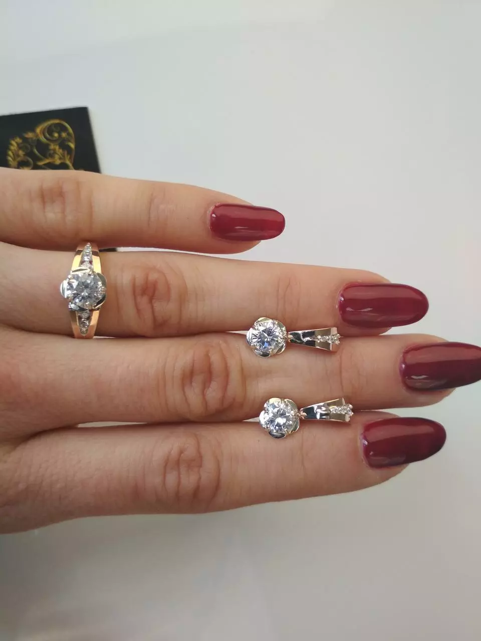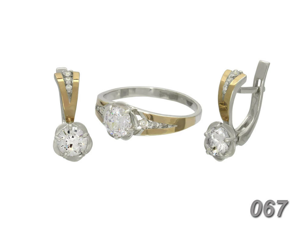 Гарнитур из серебра с золотыми пластинами и фианитами.