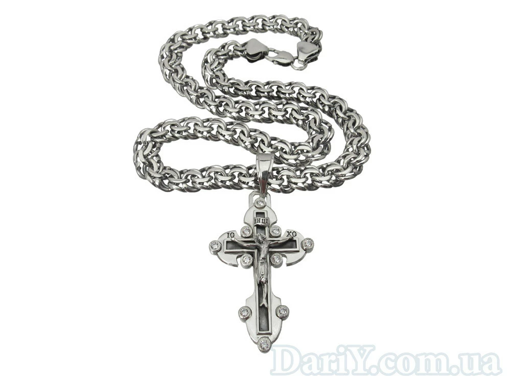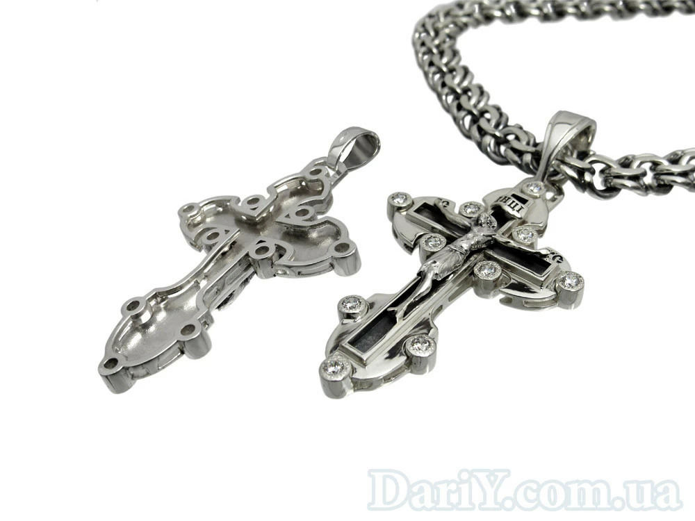 Крестик с распятием и фианитами из серебра 1034кр (25г.)