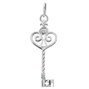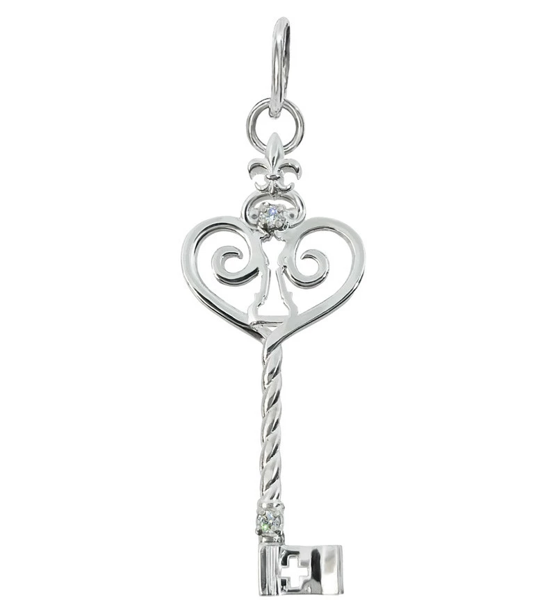 Подвеска, кулончик в виде ключика из серебра с фианитами.