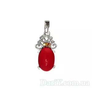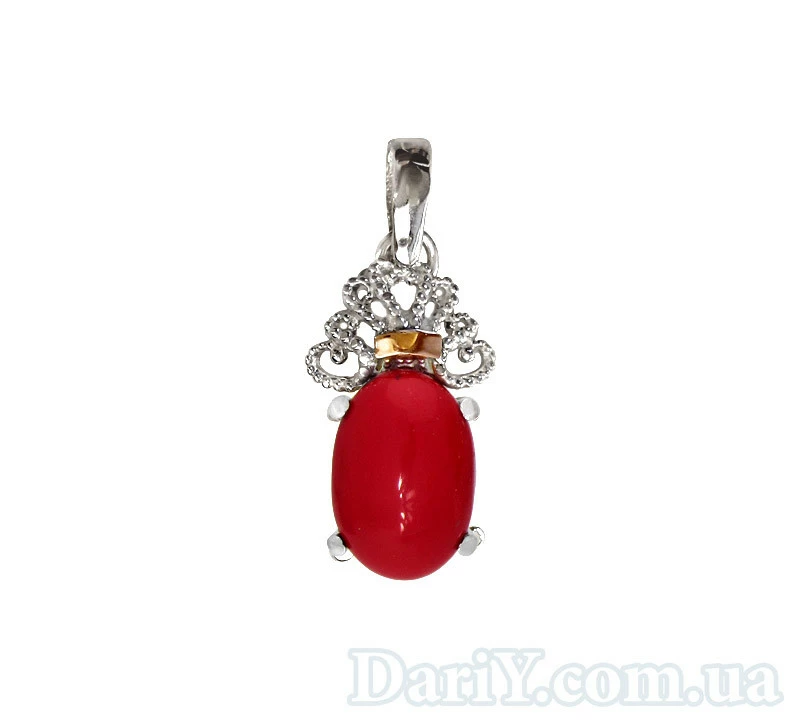 Серебряный кулон с золотой пластиной "Джамала" коралл