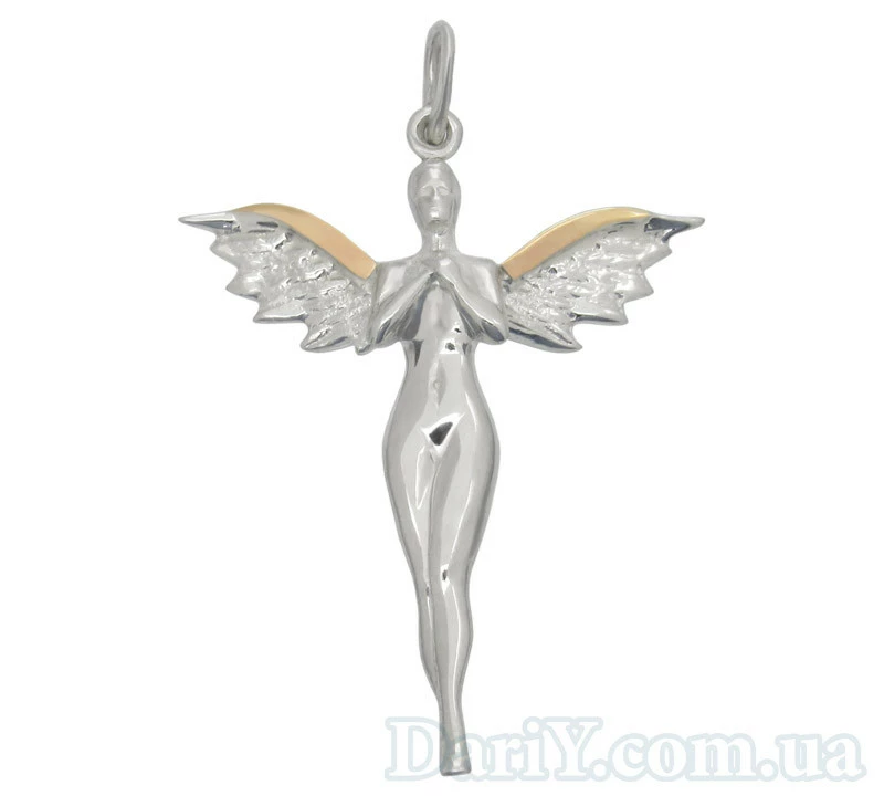 Серебряный кулон с золотыми пластинками "Ангел"