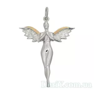 Серебряный ангел с золотыми пластинками на крыльях, сделанный в