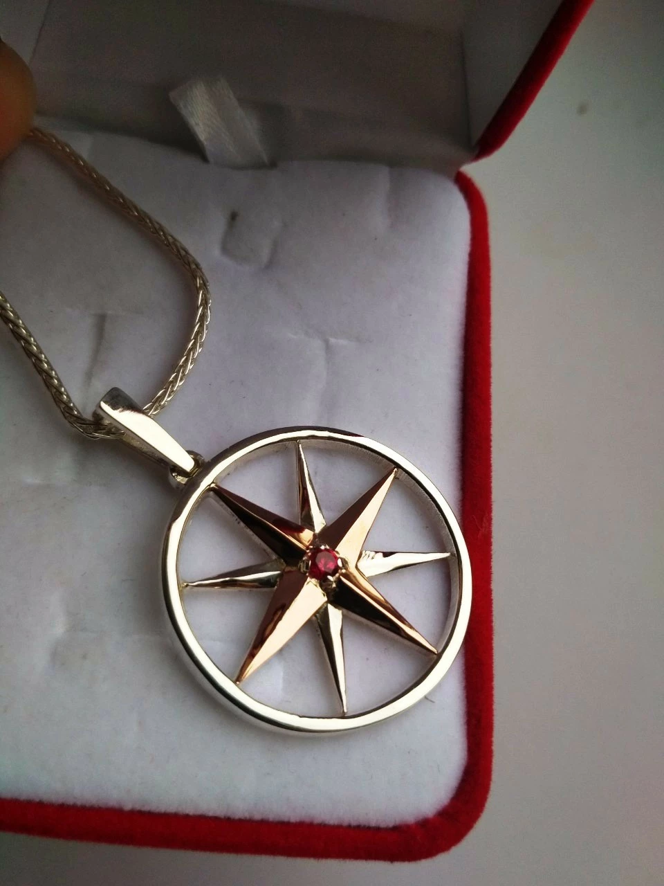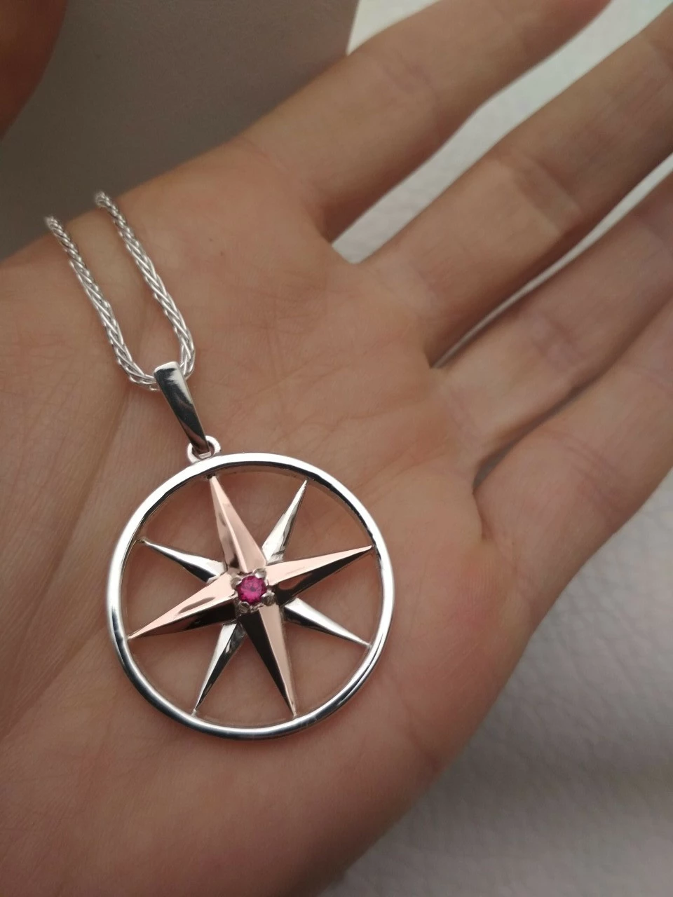 Серебряный кулон с золотыми пластинками "Роза Ветров"