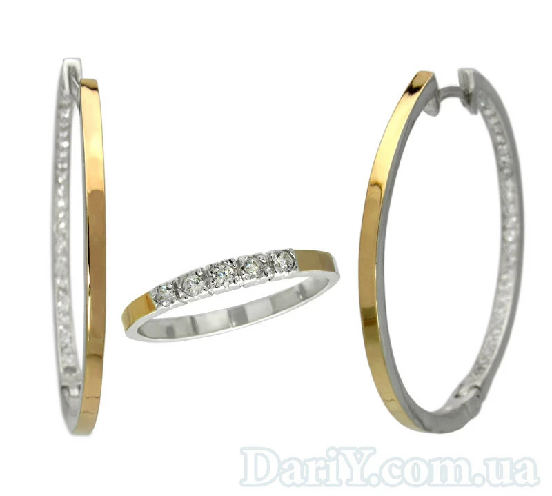 Серебряный набор с золотыми накладками "Грация". Гарнитур с