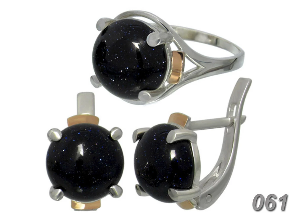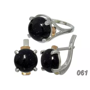 Серебряный набор с золотыми накладками "Ирис" авантюрин Ночь Каира