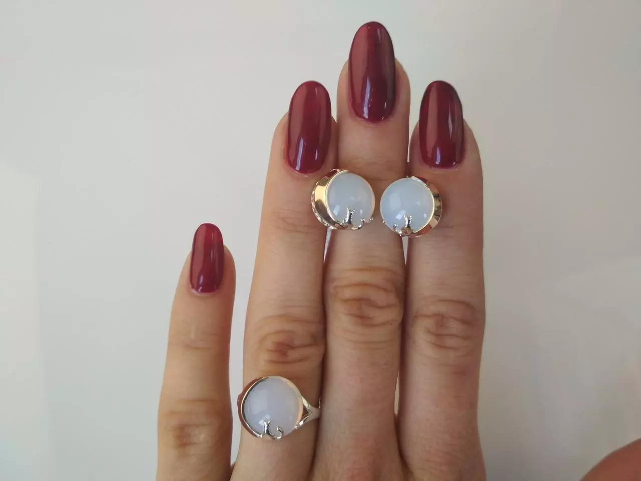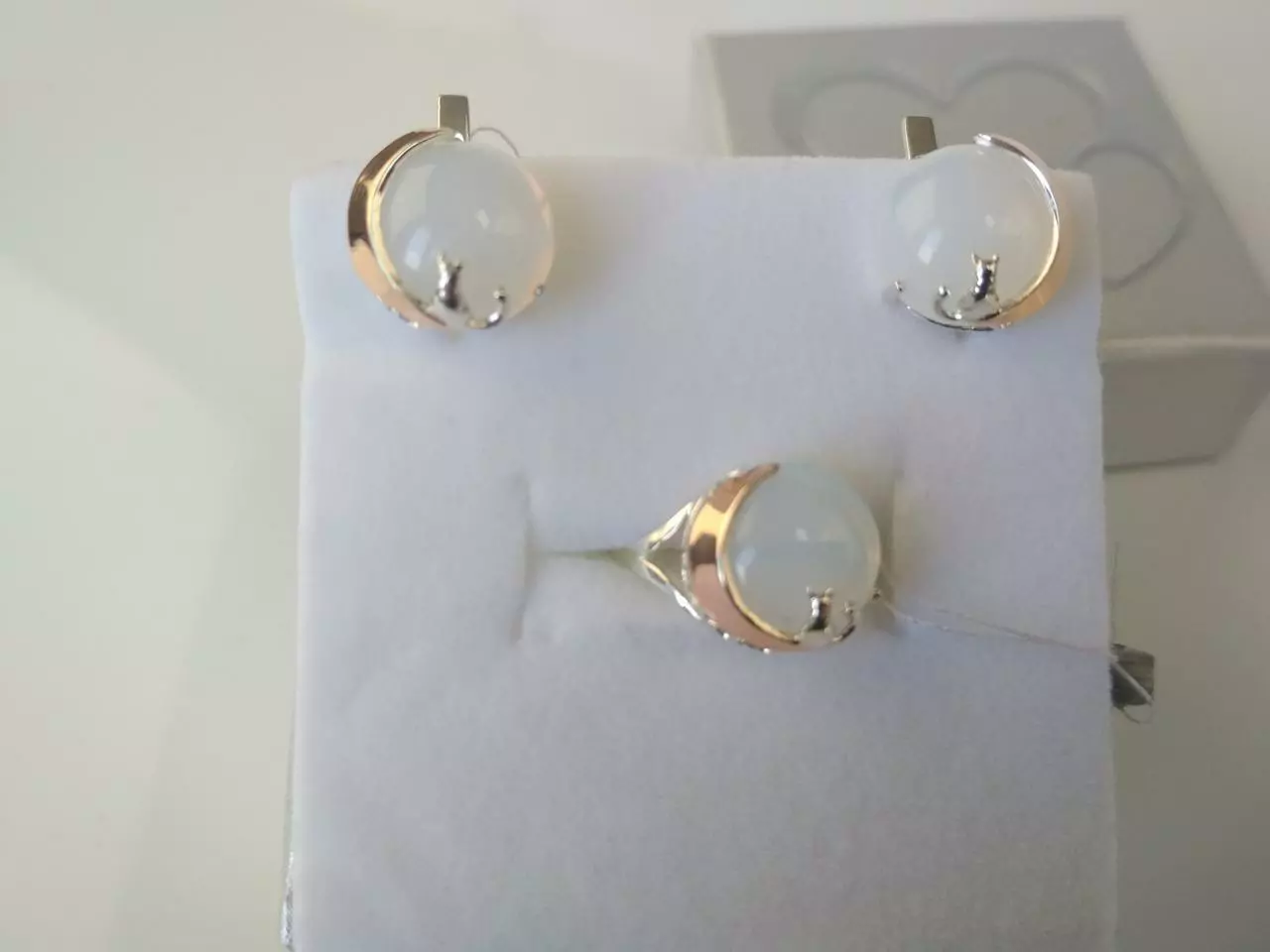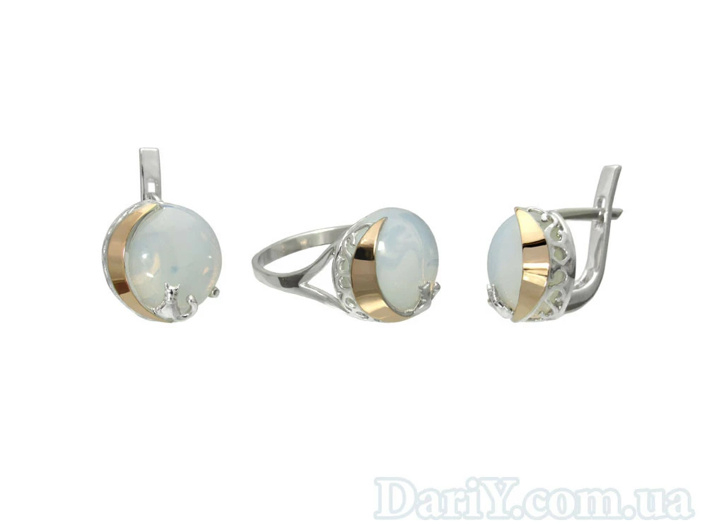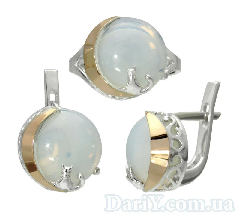 Серебряный набор с золотыми накладками "Лунный свет" и лунным камнем.