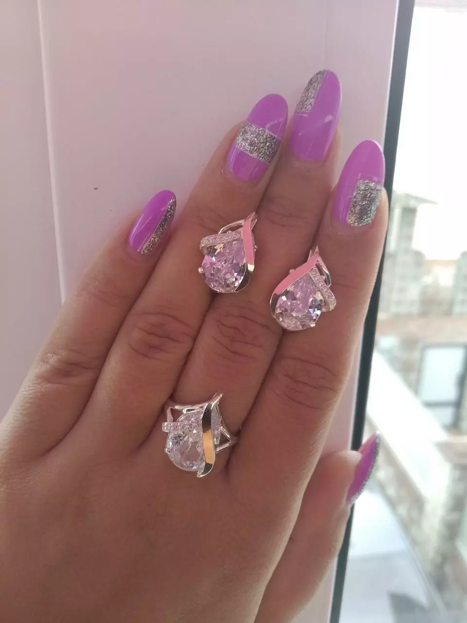 - Состав набора: Серьги|Кольцо