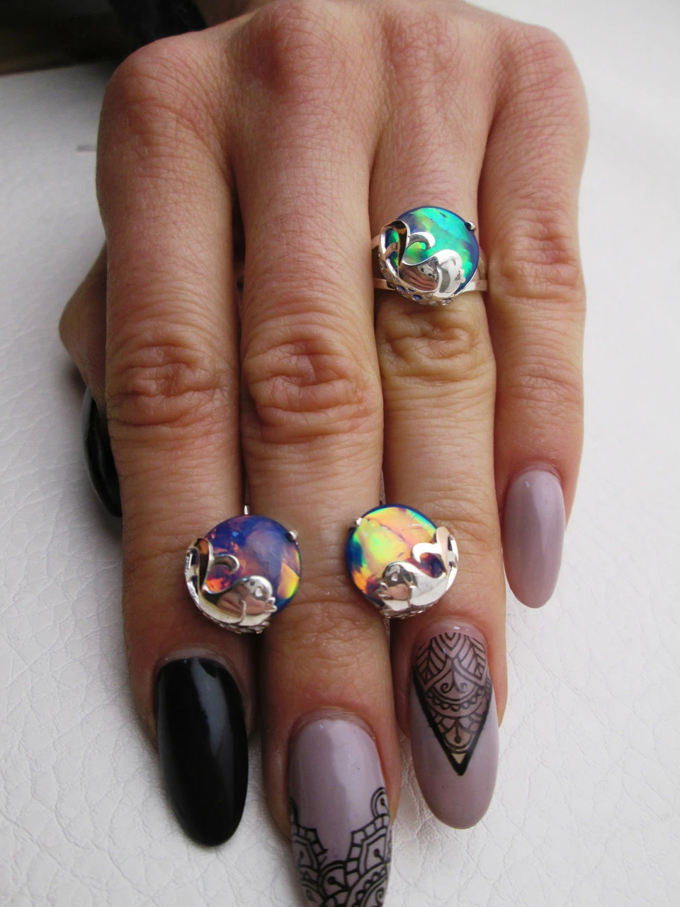 Серебряный набор с золотыми пластинами "Золотая Рыбка"