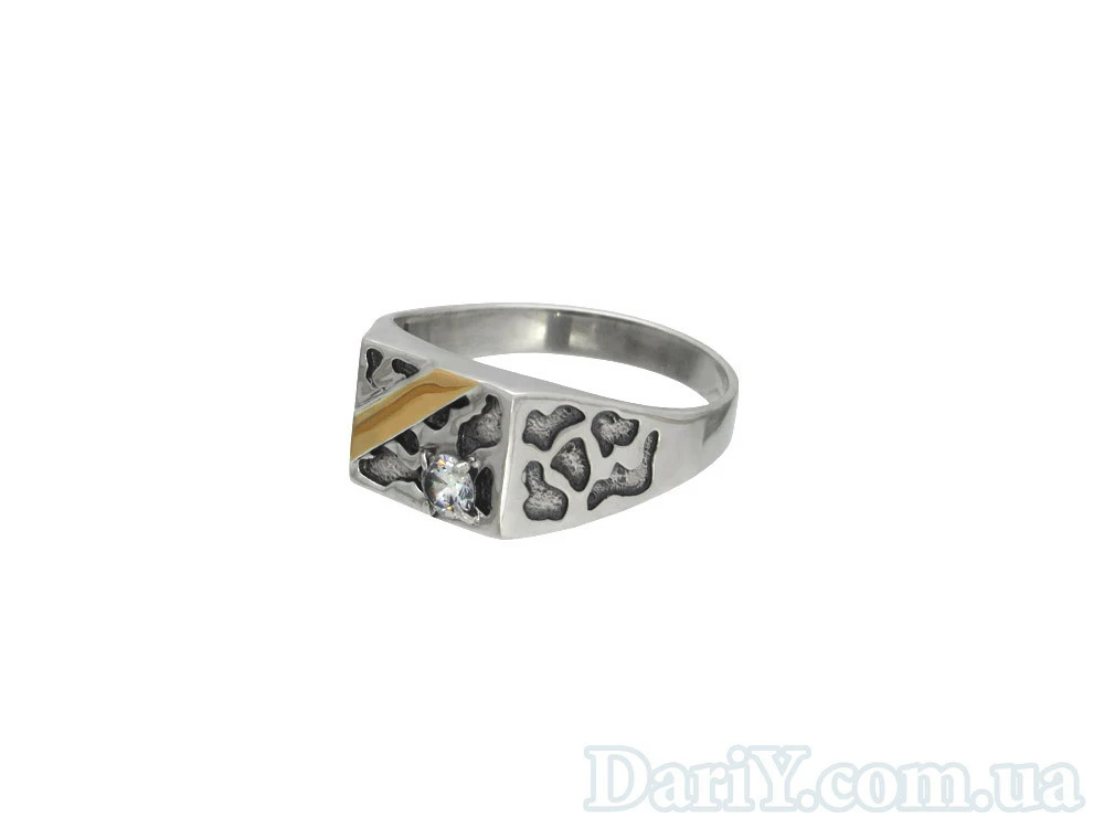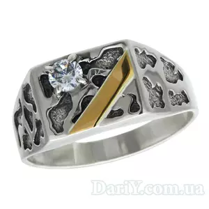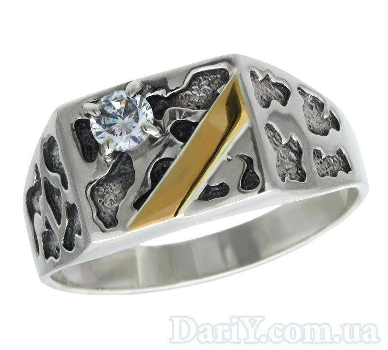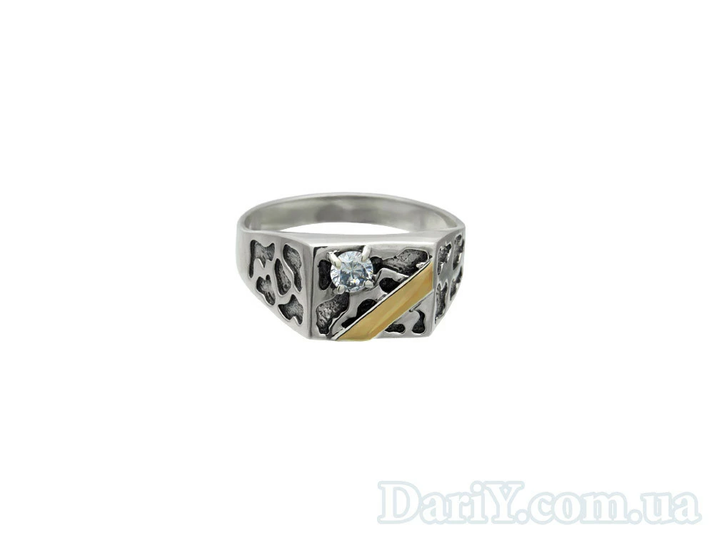 Мужское серебряное кольцо с золотой пластиной и фианитом