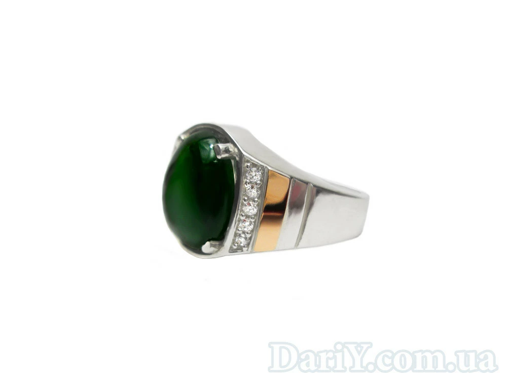 Серебряный перстень «Лорд — Хранитель» с нефритом, подчеркивает гордость и достоинство его обладателя. Оно выполненный в стиле классицизма, смотрится очень аристократично. Нотки особой роскоши и респектабельности перстню «Лорд — Хранитель» добавляют золотые накладки, расположенный по краям от камней. Изделие инкрустировано качественными фианитами (преломляющие свет как алмазы), прекрасно оттеняющими глубину и гармонию нефритовой вставки.