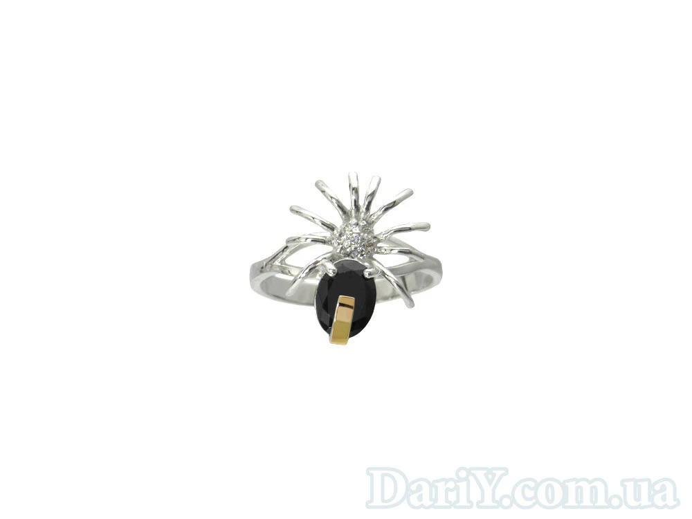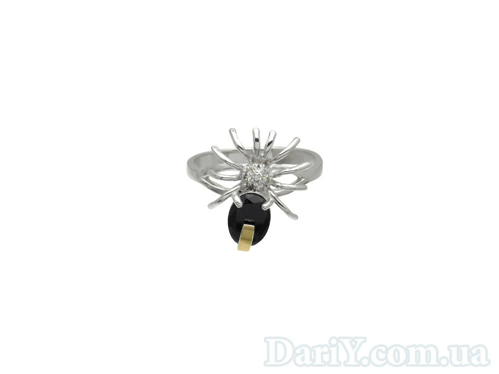 Кольцо в виде паучка из серебра с фианитами и золотой пластиной.