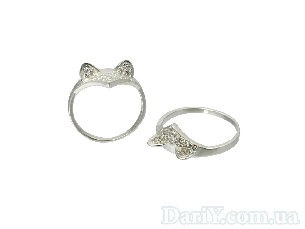 Колечко с кошачьими ушками, украшенное фианитами "Мур".