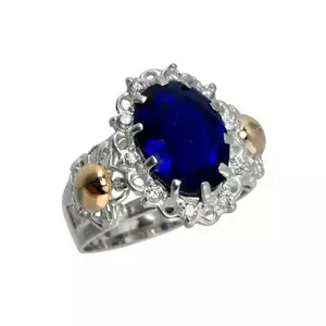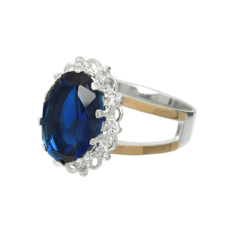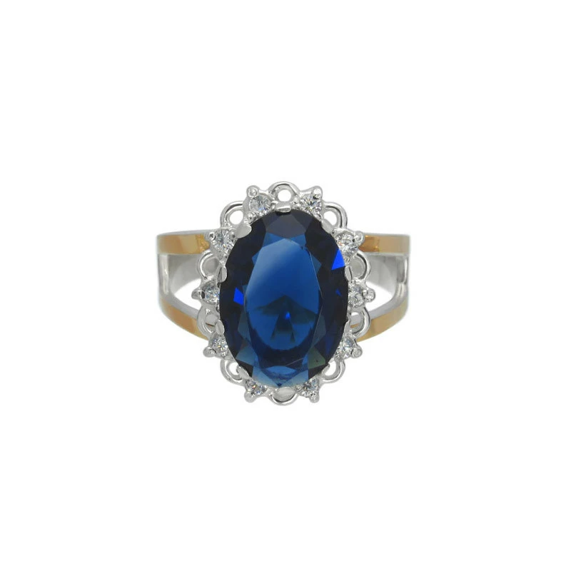 Серебряное кольцо с золотыми вставками и большим овальным камнем "Ажур"