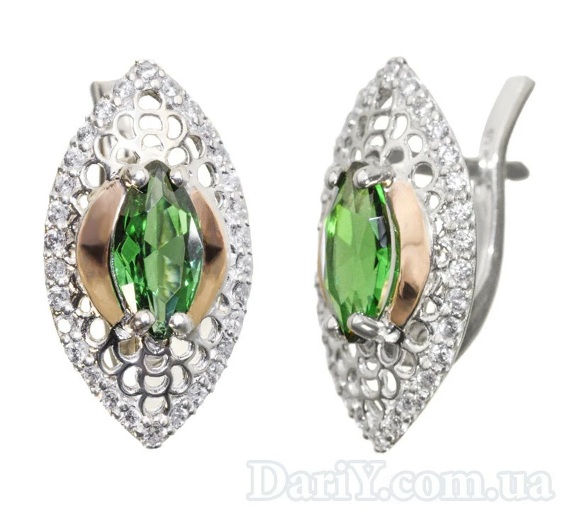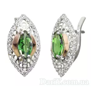 Серьги из серебра с золотыми пластинами и фианитами "Адель".