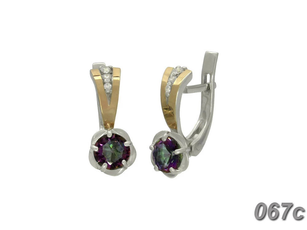 Серьги с цветком из серебра с золотыми пластинами и фианитами "Анжелика".