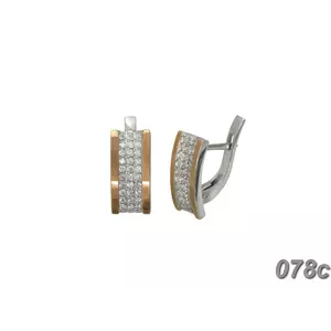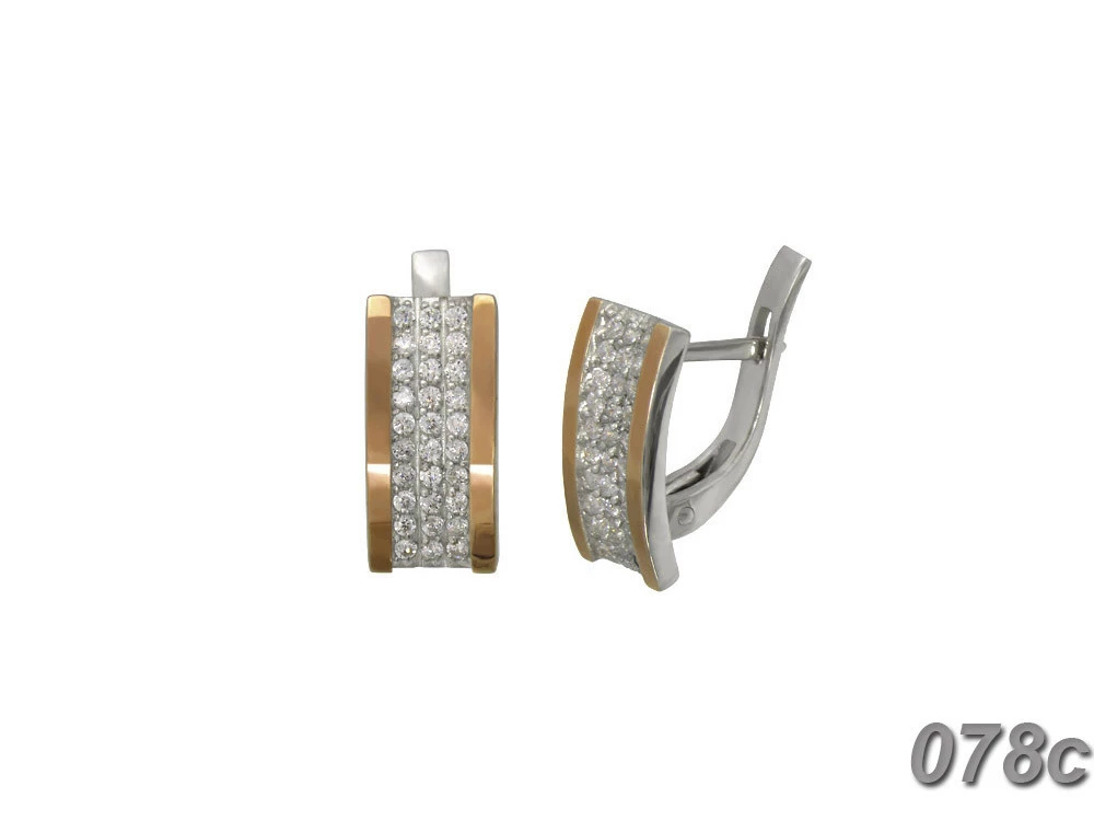 Серьги из серебра с золотыми пластинами и фианитами "Аркадия".