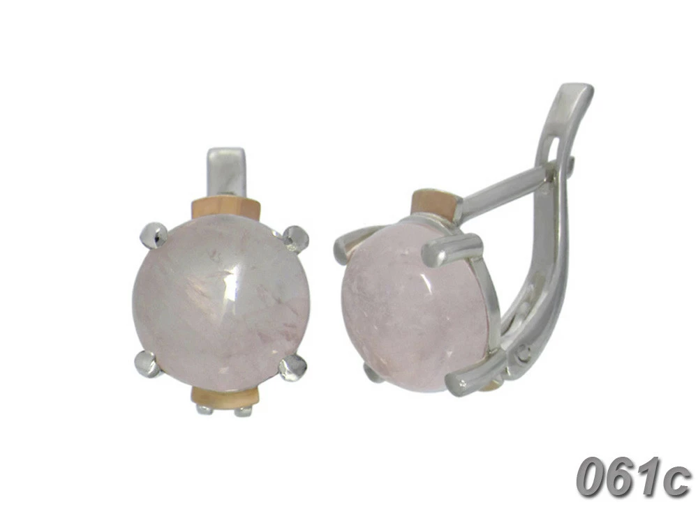 Серьги из серебра с золотыми пластинами "Ирис" с камнем розовый кварц.