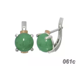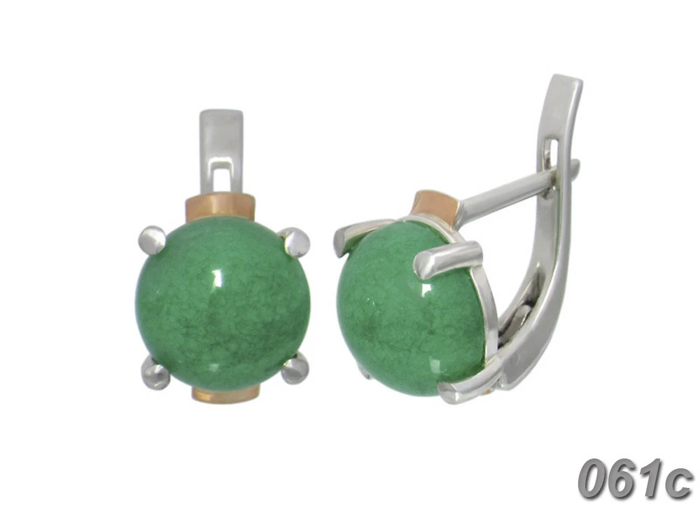 Серебряные серьги с золотыми накладками "Ирис" жадеит