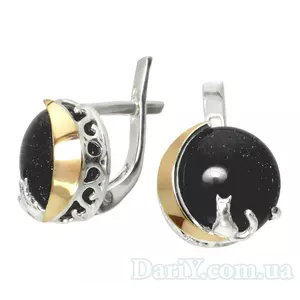 Серебряные серьги с золотыми накладками "Лунный свет" авантюрин Ночь Каира