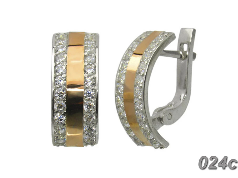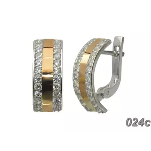 Серьги из серебра с золотыми пластинами и фианитами "Мила".