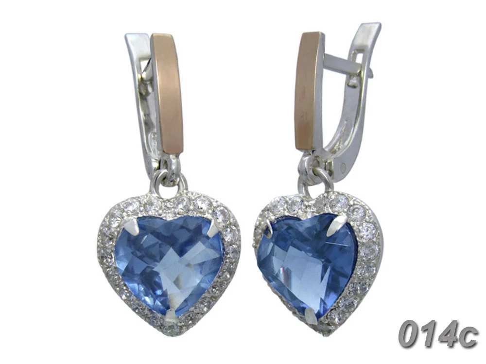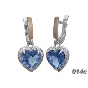 Серьги из серебра с золотыми вставками и камнем в форме сердца "Сердце Океана".