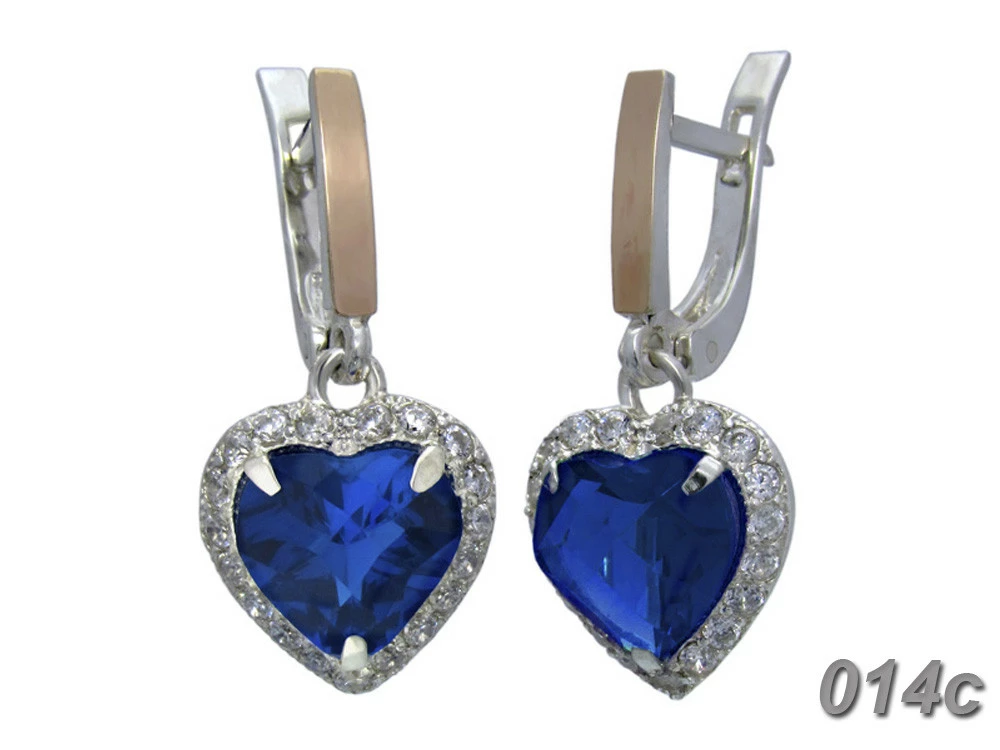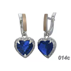 Серьги из серебра с золотыми вставками и камнем в форме сердца "Сердце Океана".