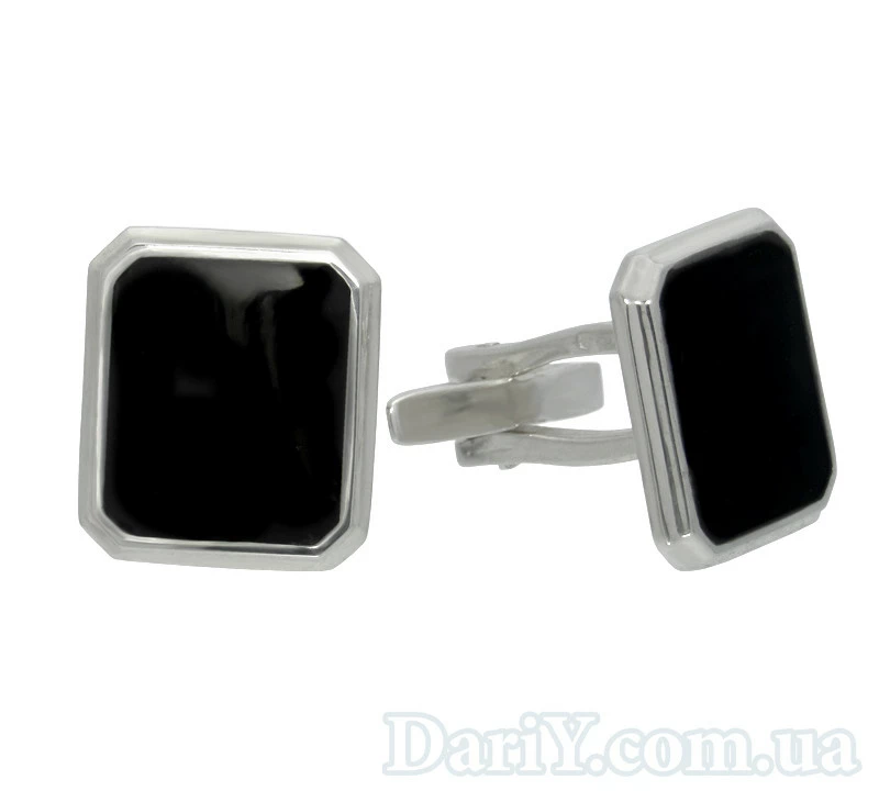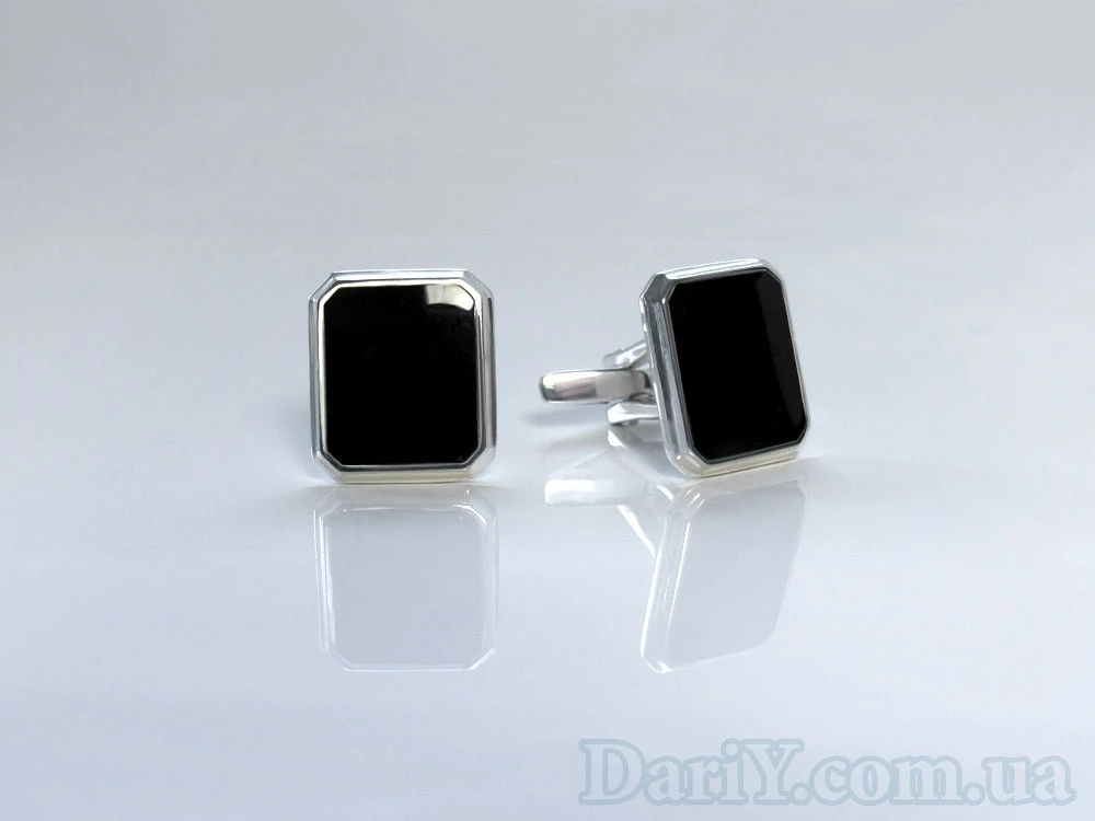 Серебряные запонки "Фердинанд" с черной глянцевой эмалью.