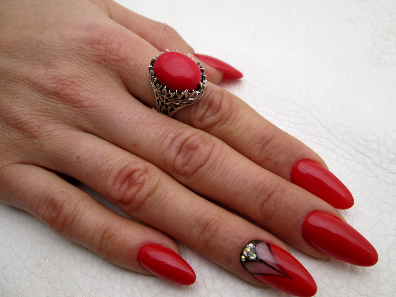 - Камни вставки: Коралл
