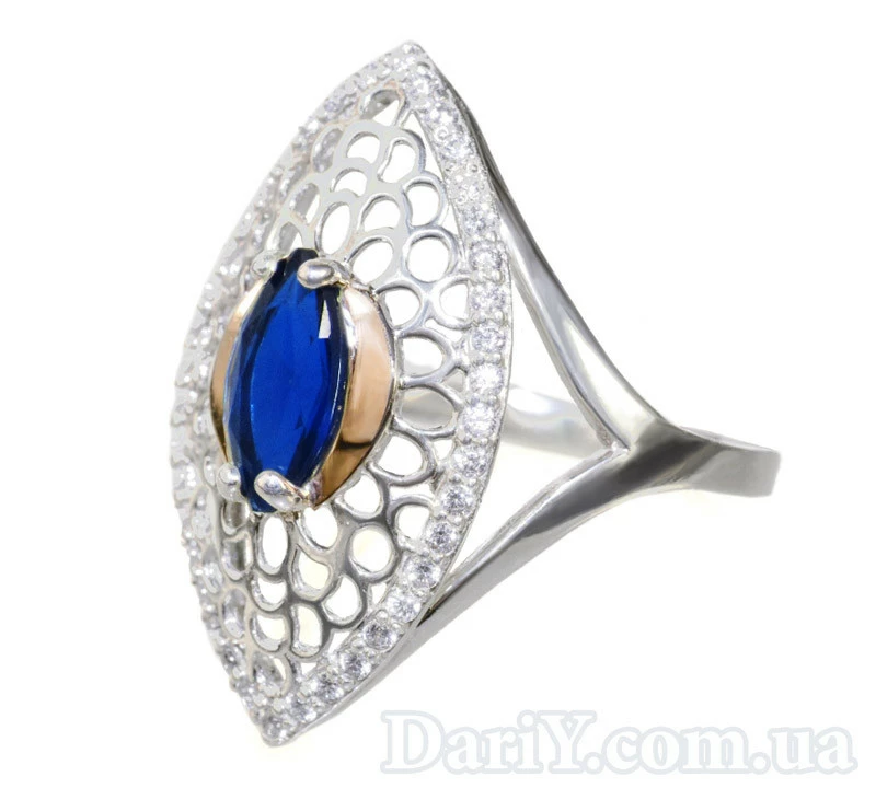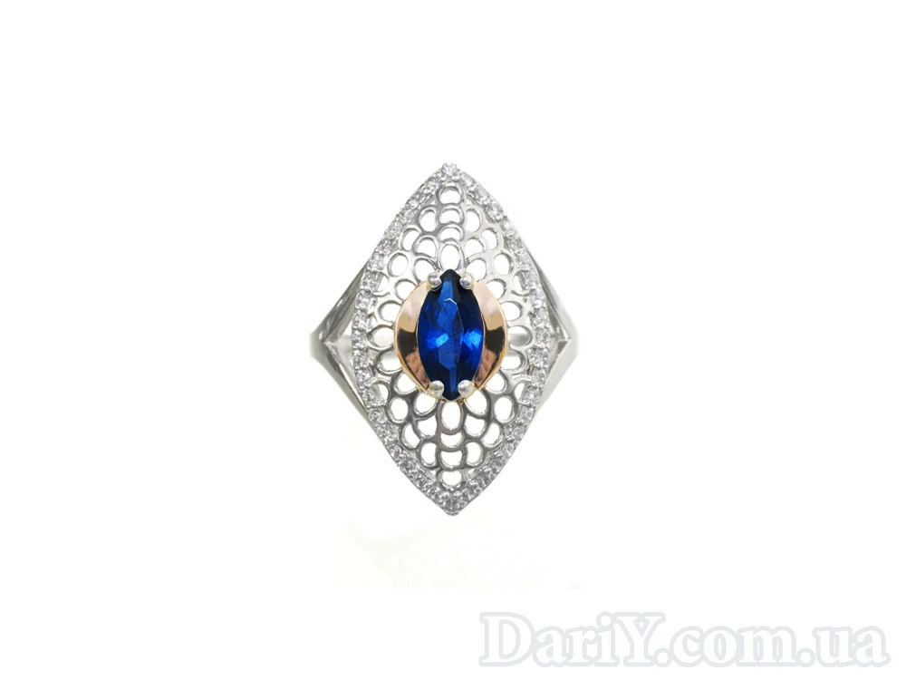 Серебряный кольцо с фианитами и золотой накладкой "Адель".