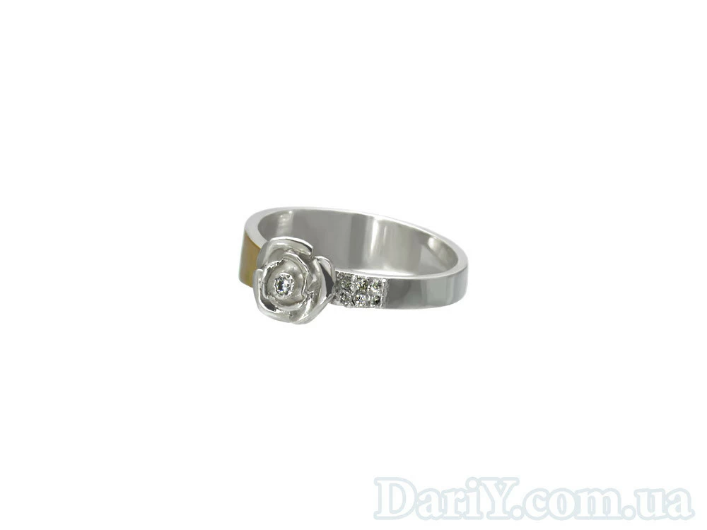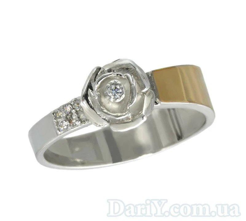 Серебряный кольцо с цветком из серебра с фианитами и золотой