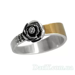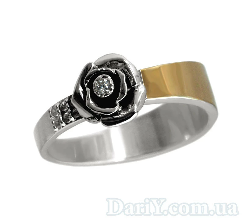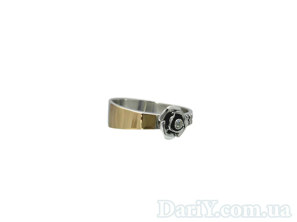Серебряный кольцо с цветком из серебра с фианитами и золотой