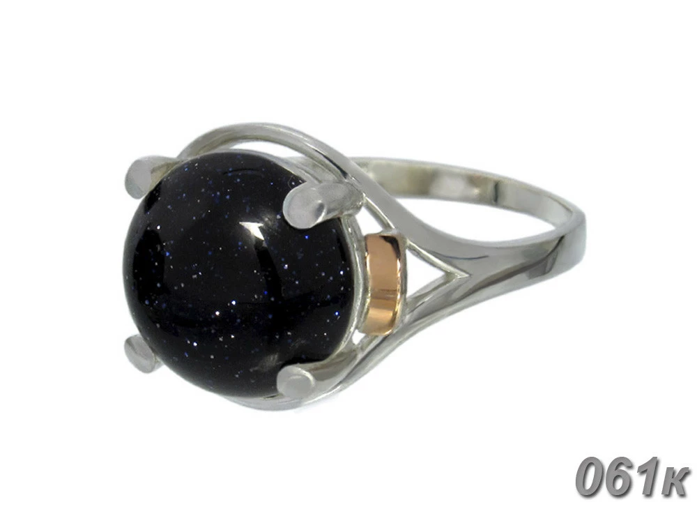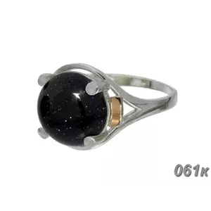 Серебряный кольцо с золотыми накладками "Ирис" и камнем авантюрин "Ночь Каира".