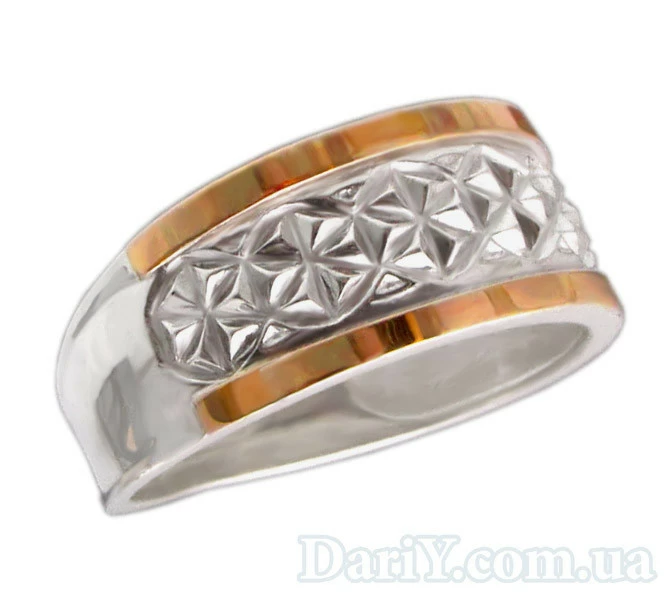 Женское серебряное кольцо с золотыми накладками "Сияние".